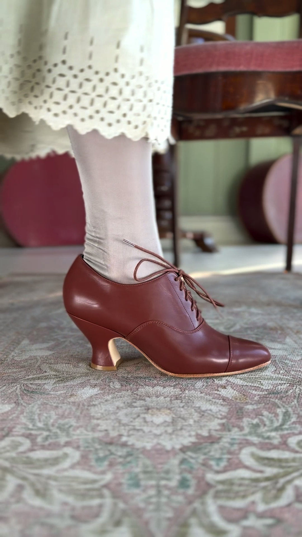 Edwardianske Oxford sko med pompadour hæl, 1900-1920 - Brun - Bertha