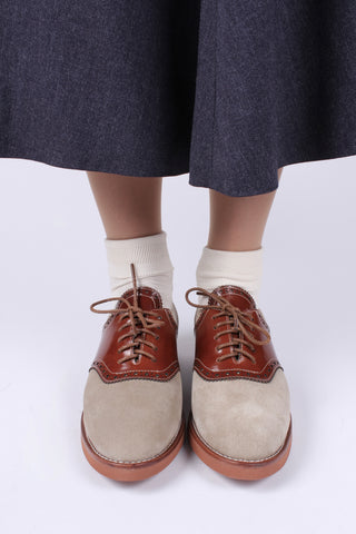 Dame 1950'er oxford snøresko i læder og ruskind. Cognac / sand - Elliot.