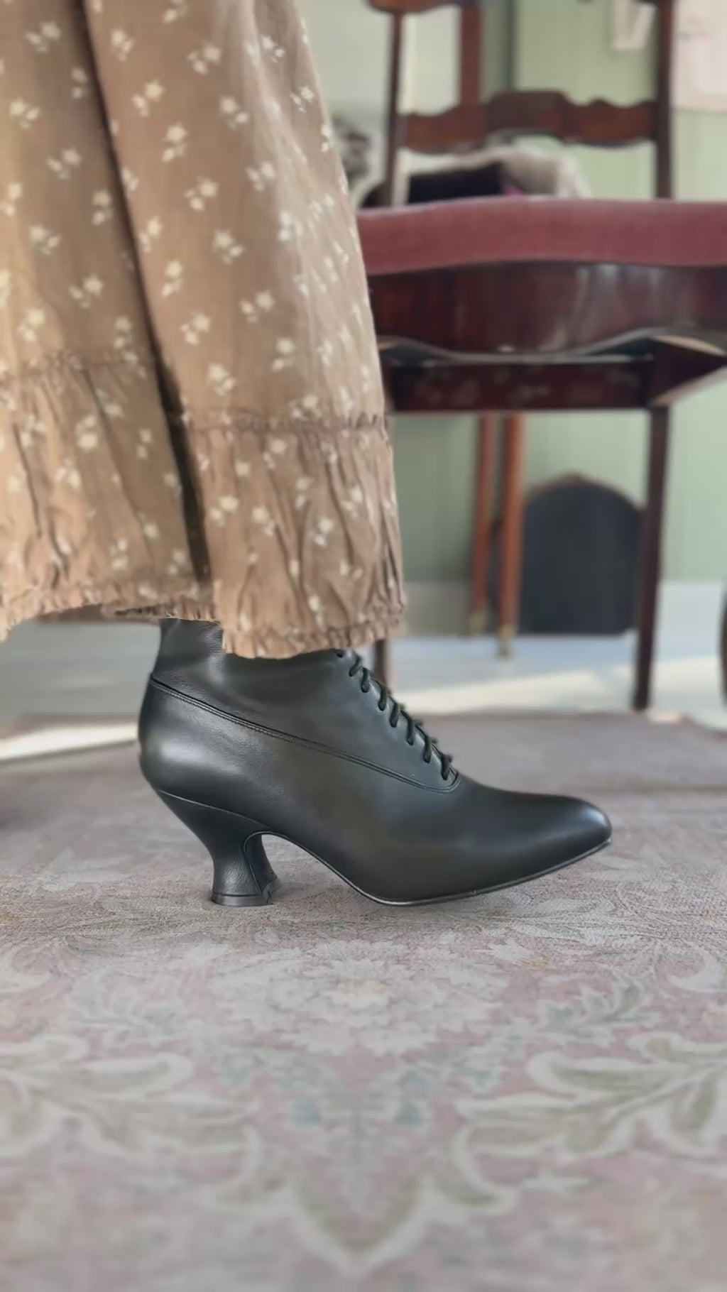 Feminine og elegante flotte Edwardianske snørestøvler med pompadour hæl.