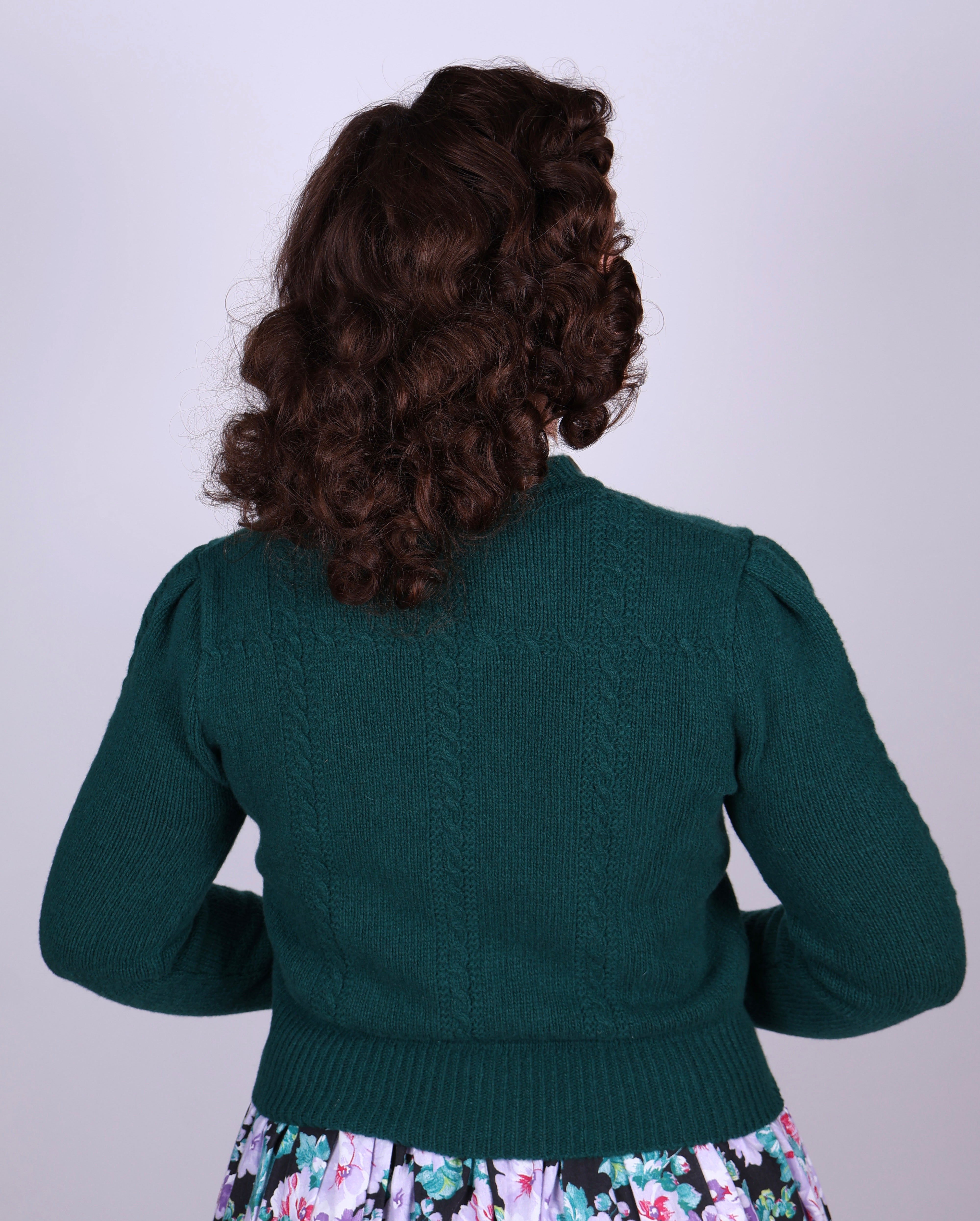 Sød og feminin kabelstrikket 1940’er cardigan – Merino – Smaragdgrøn – Astrid