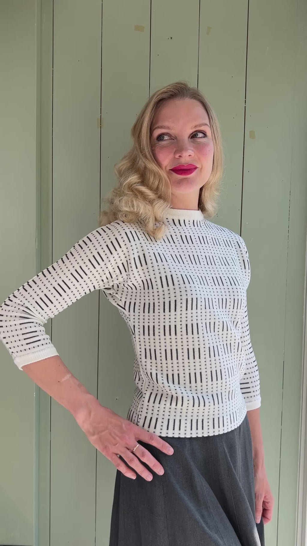 Denne vintage-inspirerede stil passer perfekt til alle former for højtaljede bukser og nederdele. Mønstret er en tro gengivelse af en original pullover fra 1950’erne.