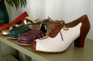 1930'er pumps med udskåret mønster og snøre - Off White - Eva