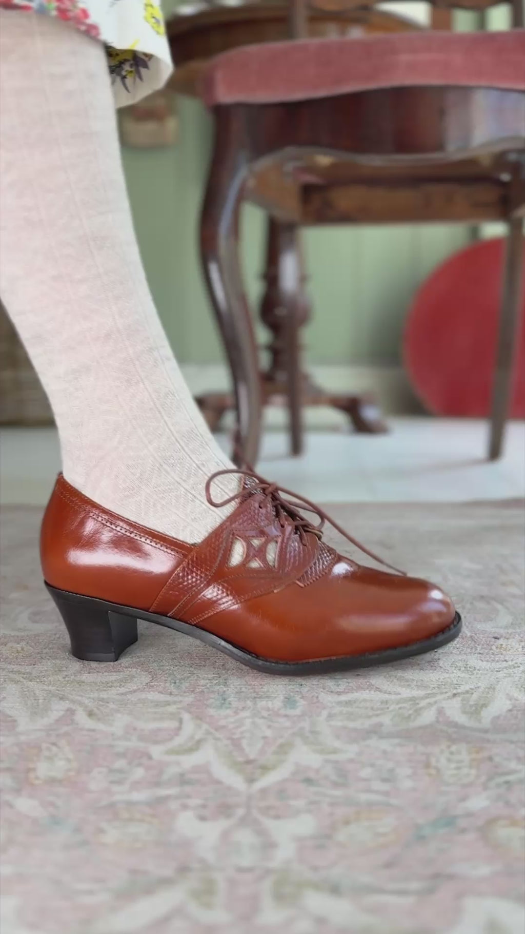 Early 1940s everyday lace-up shoes - Cognac brown - Emily