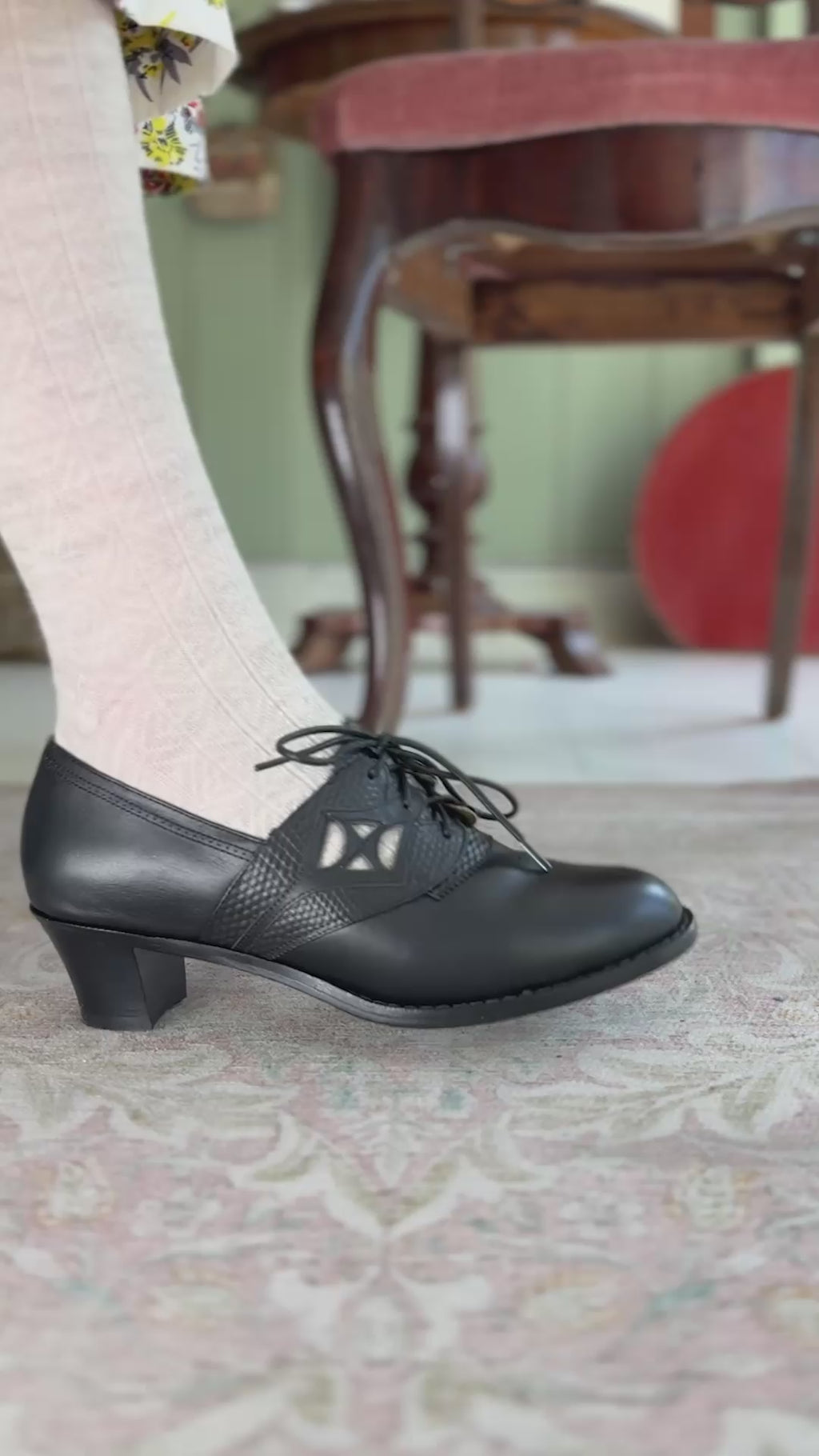Practical 1940s Everyday Shoe with Beautiful Cutouts and Military Heel