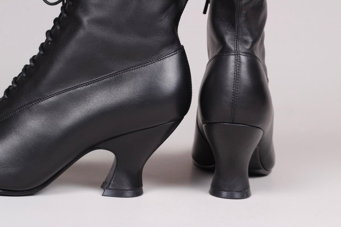 An elegant Edwardian-inspired lace-up boot made of very soft leather.