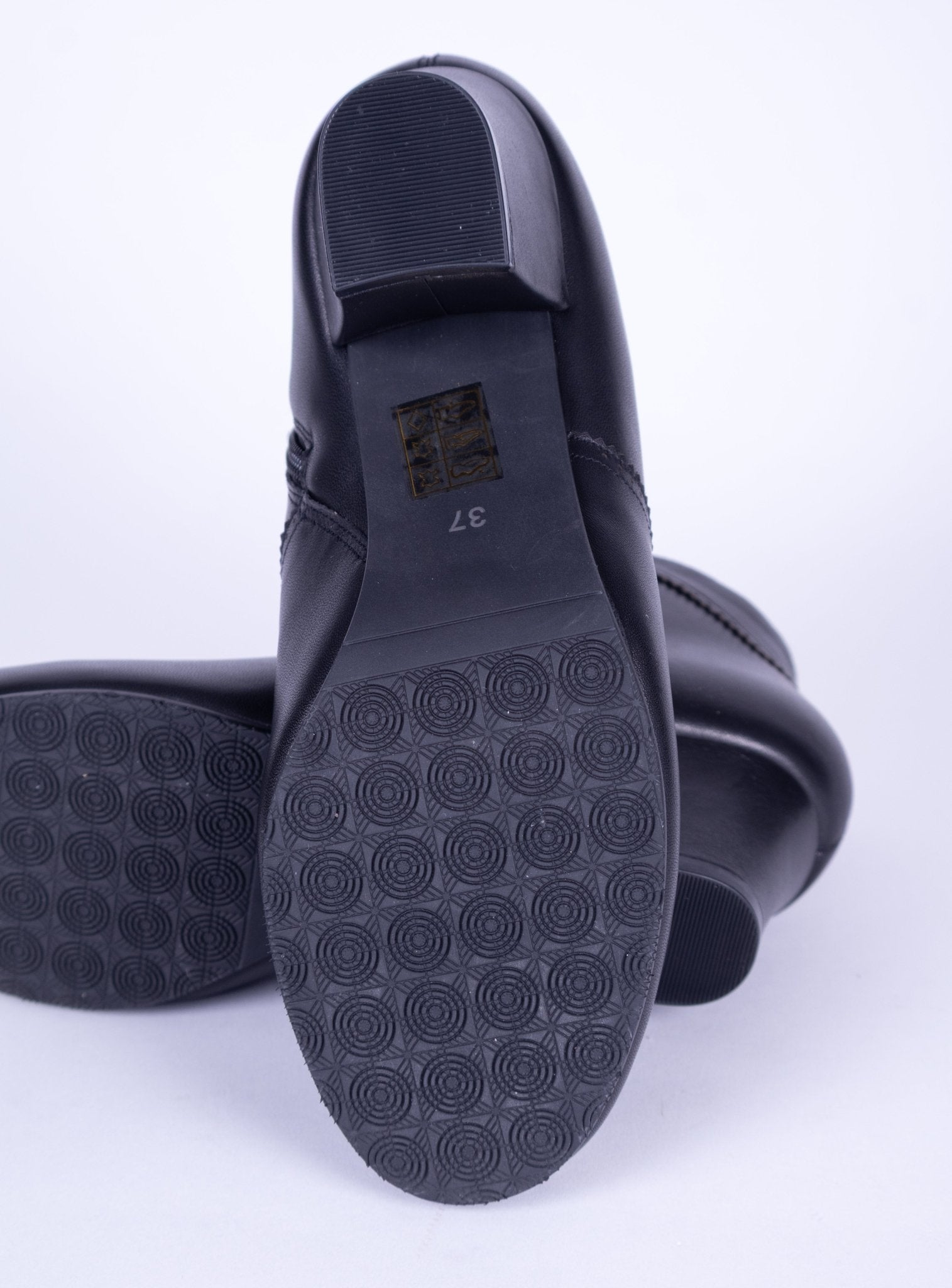 The boot features a rounded, spacious toe cap, decorative brogue detailing, and a slim-fitting short boot shaft. For easy fastening, the boot features a zipper. The sturdy, slightly curved, medium-high heel and the short, close-fitting shaft give the boots an elegant, sophisticated look.