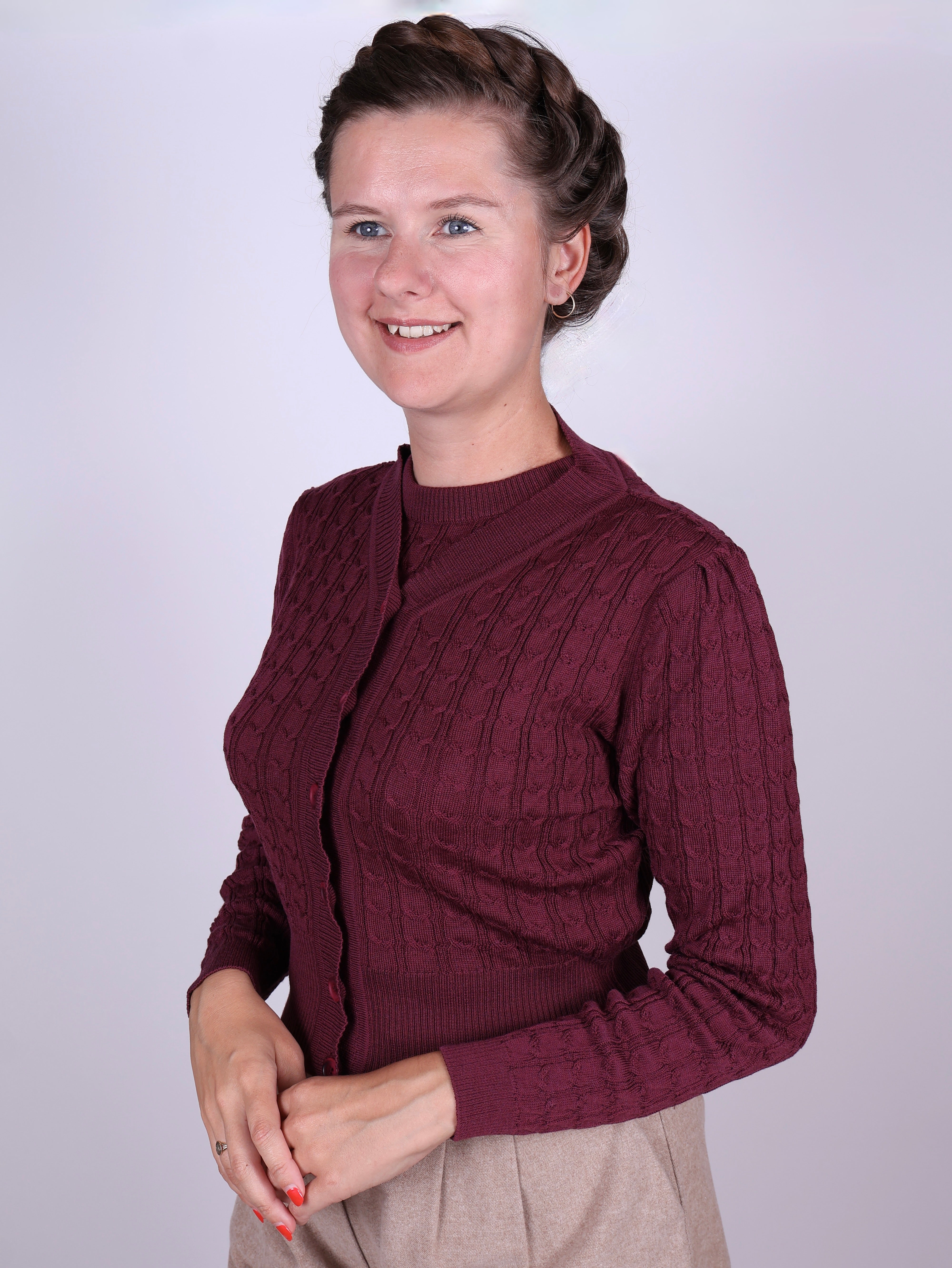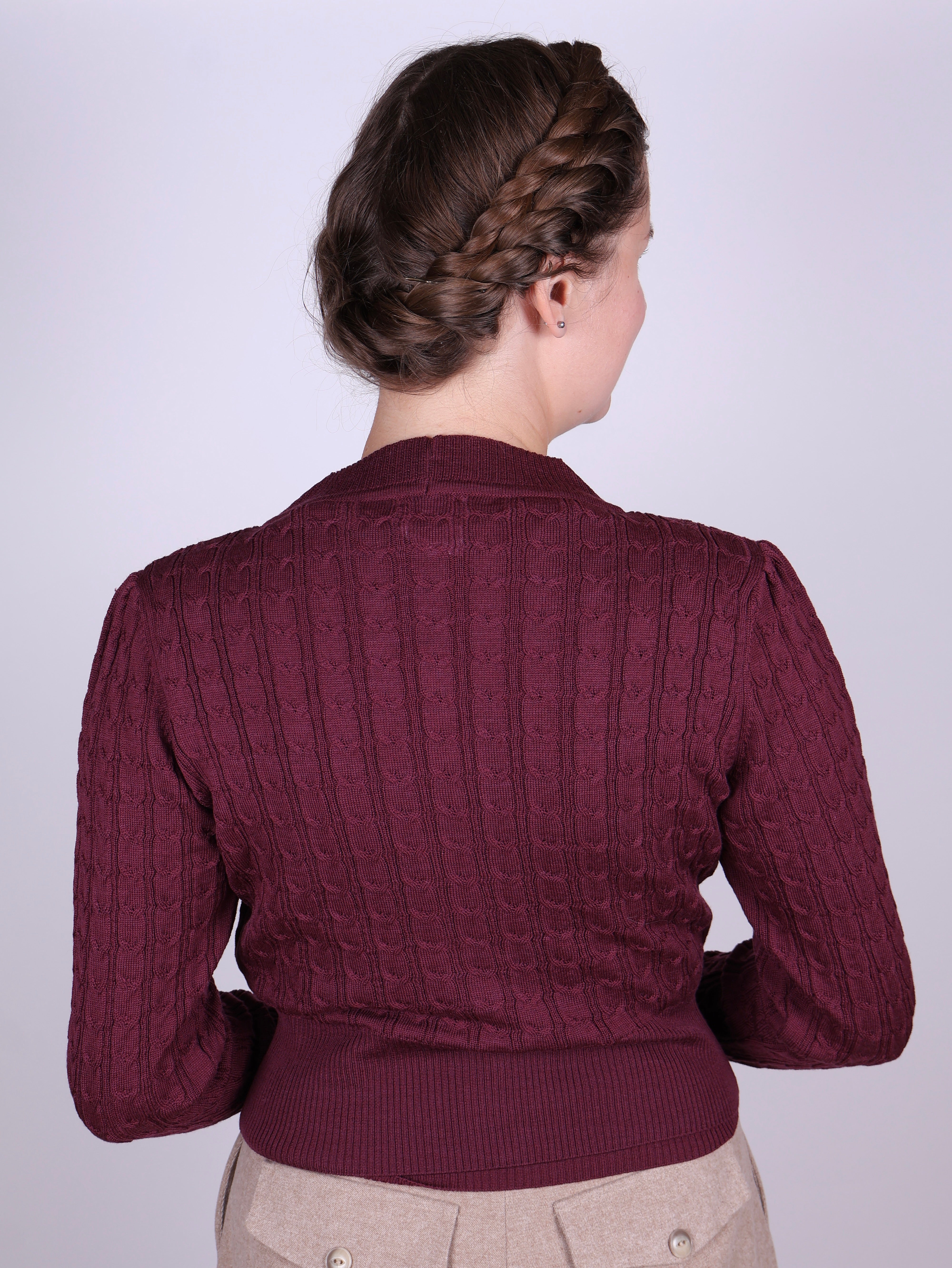 This beautifully crafted cardigan captures the essence of classic 1940s and '50s style. Made from 100% fine-spun merino wool, it offers both warmth and comfort in a truly timeless design.