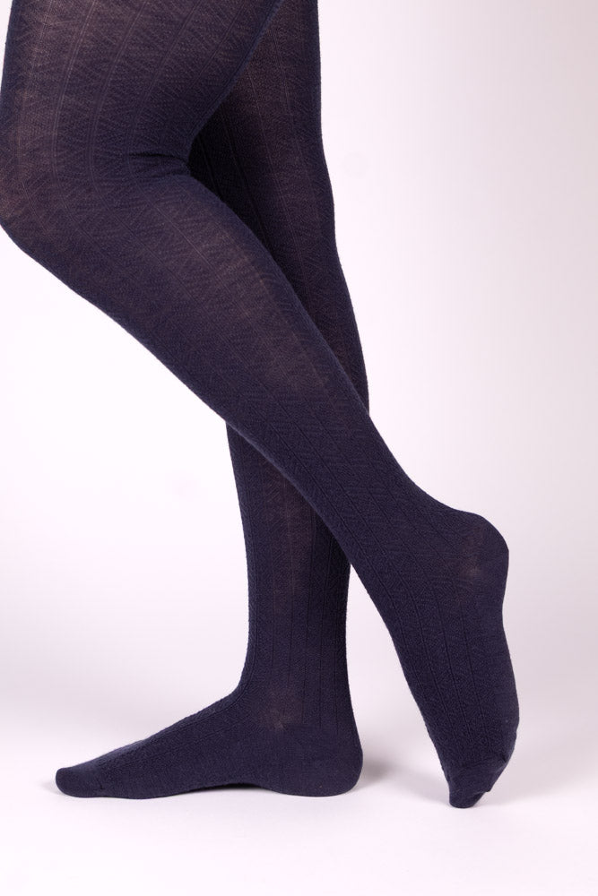 In the 1940s and 1950s, women wore garter stockings, but today most prefer tights. So we’ve designed wool tights with a vintage knit pattern inspired by an original 1940s pair of garter stockings.
