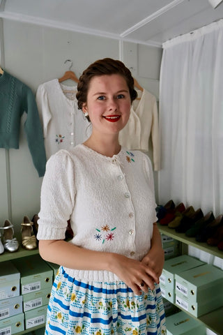 Jeg har altid haft en kærlighed til originalt vintage tøj og har været dybt interesseret i det siden mine teenageår. Jeg driver både onlinebutikken memery og den fysiske butik Vintage Divine/memery i Aarhus, hvor vi sælger originale vintagekjoler og tøj fra 1920-1970 samt memery sko.
