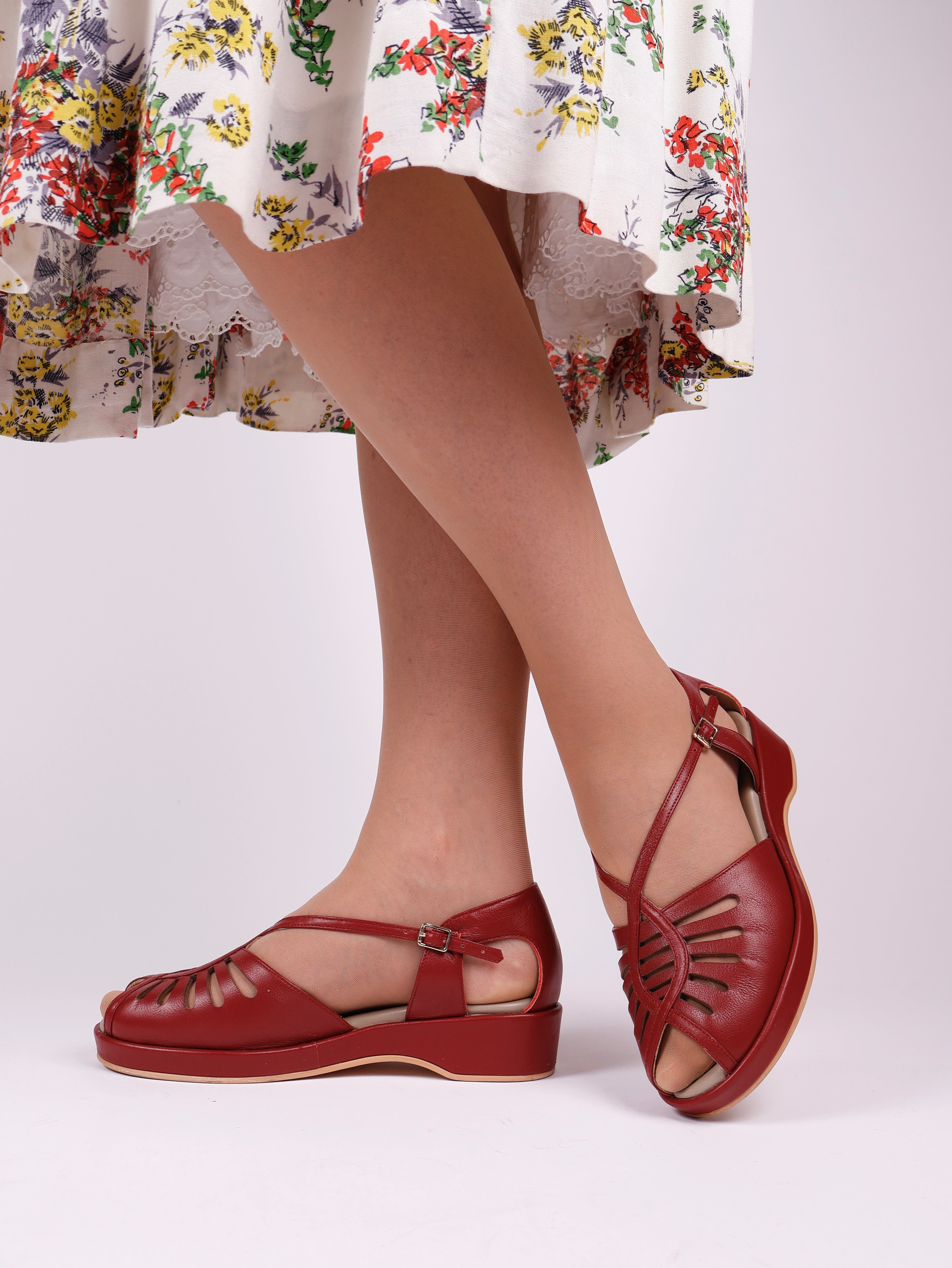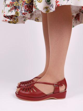 Disse smukke 1940'er-inspirerede vintage wedges forener klassisk 1940'er vintage charme med moderne komfort. Med en elegant plateau-sål, krydsede smalle remme og en flirtende peep toe, er de skabt til solrige dage og lune aftener.