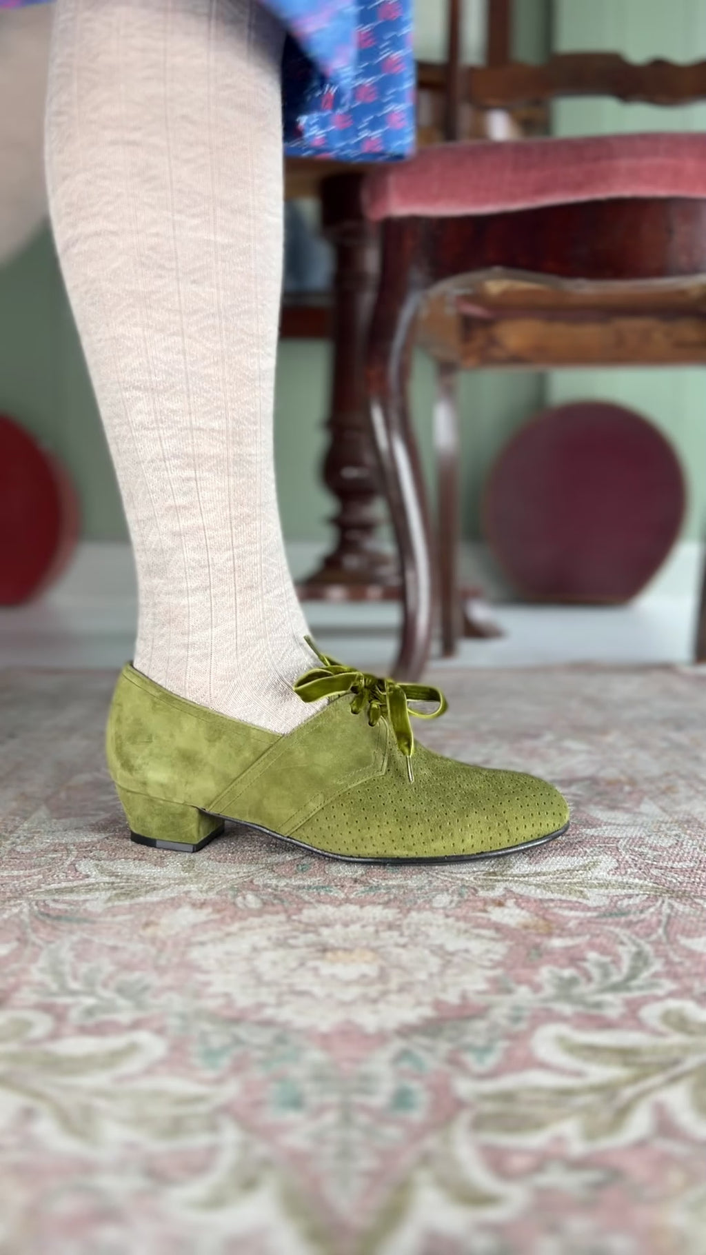 1940'er vintage style Derby sko i ruskind - Lav hæl - Støvet grøn - Esther