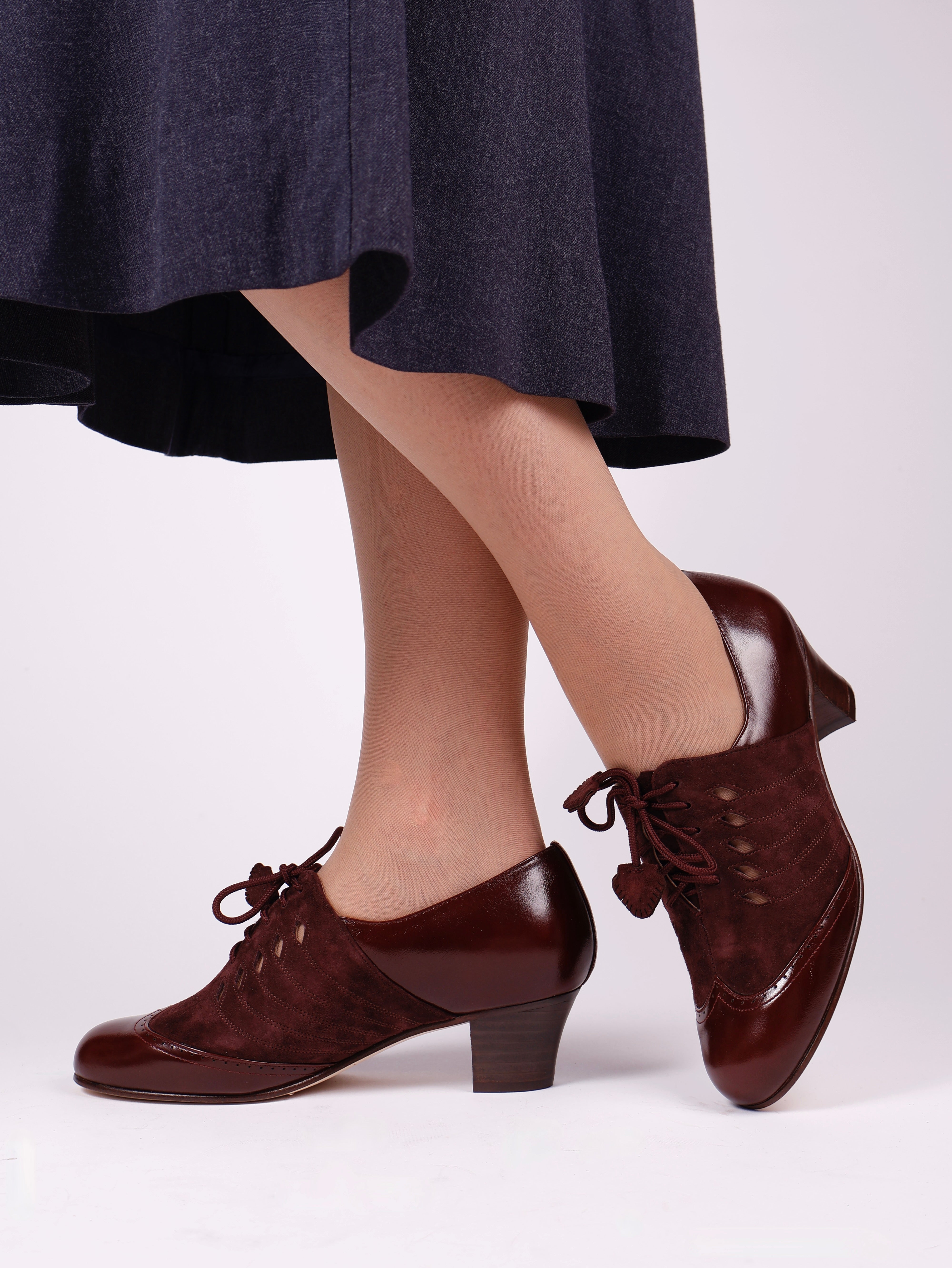 40’er Oxford snøresko i læder og ruskind - Mørkebrun / Aubergine - Clara