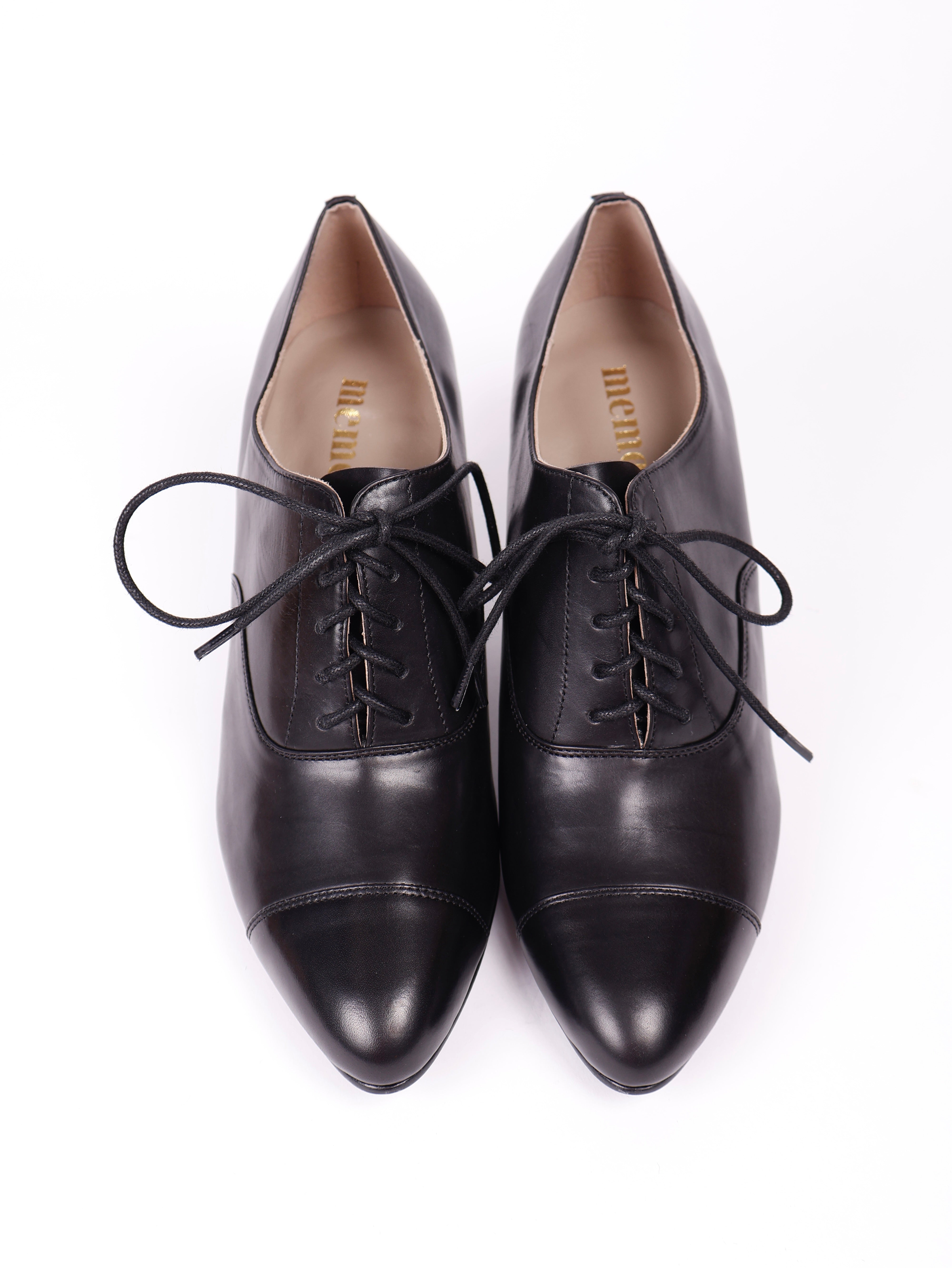 Ekstravagante Oxford snøresko i meget blødt kvalitetslæder med naturlig læderstruktur. Skoene har en spids snude, elegante pompadour-hæle og fine, enkle detaljer.