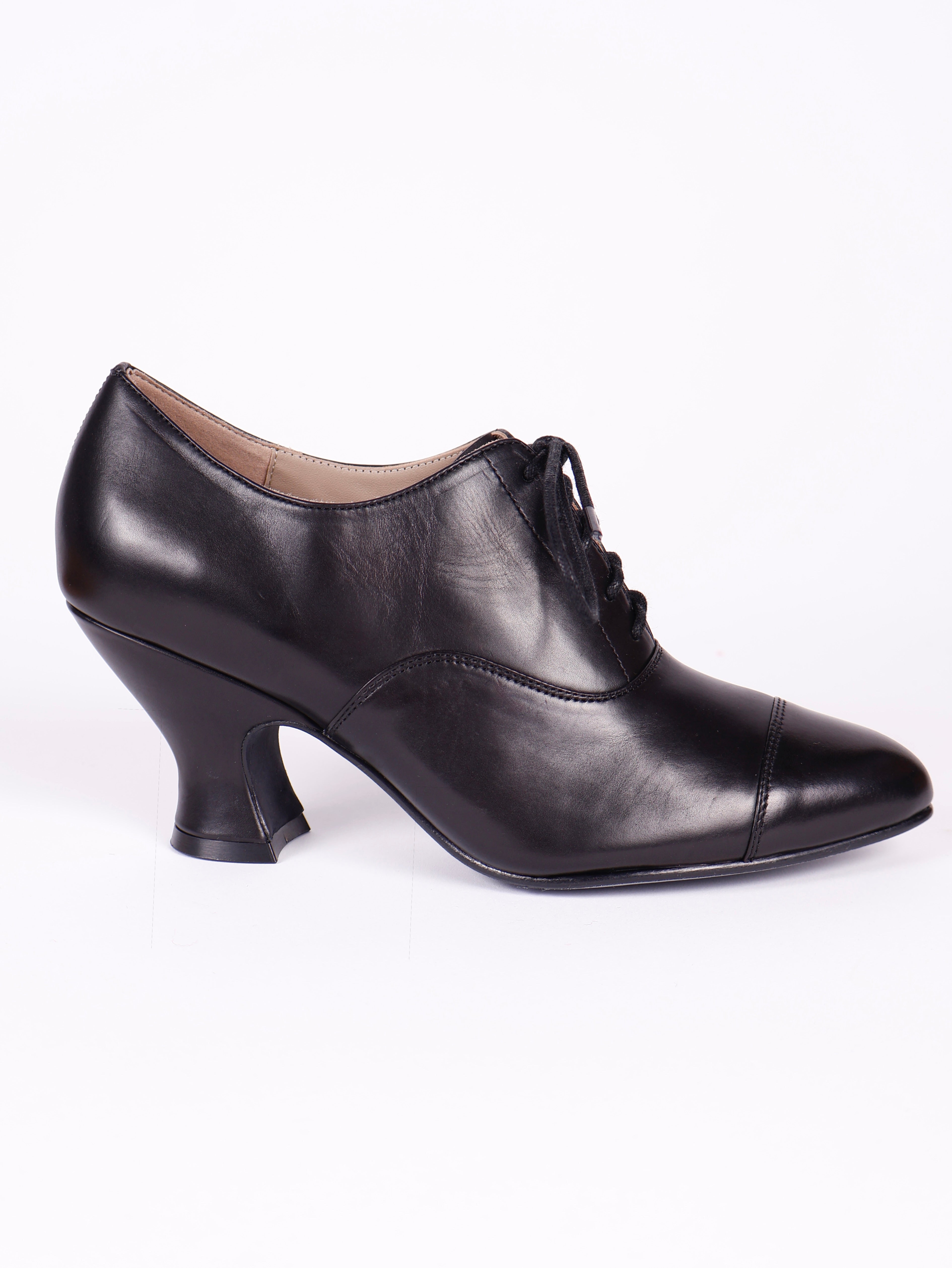 Edwardianske Oxford sko med pompadour hæl, 1900-1920 - Sort - Bertha